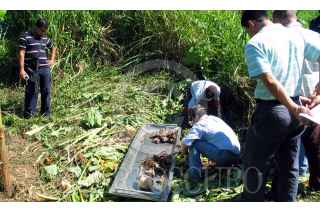 CENTRO, TABASCO, 16DICIEMBRE2007.- Una osamenta de restos humanos fue hallada sobre un predio de la ranchería Plátano y Cacao segunda sección, cuando un campesino realizaba la limpia de la parcela. FOTO: MARCO POLO GUZMÁN HERNÁNDEZ/CUARTOSCURO.COM