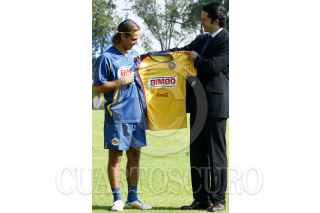 MÉXICO, D.F. 23DICIEMBRE2007.- El jugador Richard Nuñez fué presentado como el nuevo miembro de las Águilias del América. En la imagen con Daniel Alberto Brailovsky, director técnico de ese equipo, durante la conferencia de prensa que ofrecieron. FOTO: PAOLA HIDALGO/CUARTOSCURO.COM
