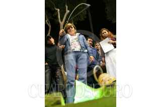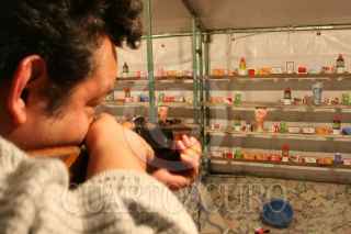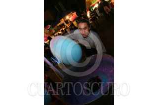 MÉXICO D.F. 26DICIEMBRE2007.-Decenas de familia acuden al Monumento a la Revolución donde fueron colocados puestos ambientado con motivos navideños y con genente disfrazada de los Reyes Magos para tomarse la foto con ellos.En la imagen una visitante realiza un juego de equilibrio, parando una botella de cerveza para poder ganar quinientos pesos. FOTO: GUILLERMO PEREA/CUARTOSCURO.COM