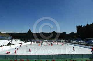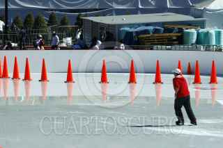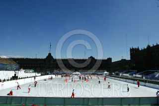 MÉXICO, D.F. 28DICIEMBRE2007.- Esta mañanba se cerró la pista de hielo ubicada en el Zócalo capitalino debido al deshielo de unas secciones de su superficie. FOTO: PAOLA HIDALGO/CUARTOSCURO.COM