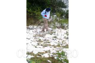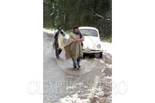 OAXACA, OAXACA; 06ENERO2008.- A días de que lo más duro del clima se dejara sentir en la sierra norte, todavía hay rastros de la nieve. Los niños de la zona no perdieron el tiempo para poder jugar con la nieve, el mirador de Cerro Pelón se ha convertido en el lugar turístico más visitado de la sierra norte, en el cual decenas de familias aprovechan para tomarse la foto. FOTO: MAX NÚÑEZ/CUARTOSCURO.COM