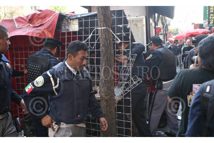 MÉXICO, D.F., 07ENERO2007.- Granaderos y policias de la SSP realizarón un fuerte operativo contra ambulantes que venden pirateria en el perimetro B, sobre el Eje Central Lazaro Cardenas. FOTO: SAÚL LÓPEZ/CUARTOSCURO.COM