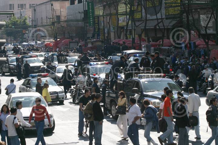 MÉXICO, D.F., 07ENERO2007.- Granaderos y policias de la SSP realizarón un fuerte operativo contra ambulantes que venden pirateria en el perimetro B, sobre el Eje Central Lazaro Cardenas. FOTO: SAÚL LÓPEZ/CUARTOSCURO.COM