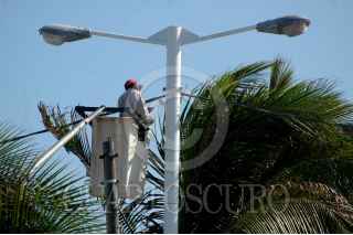 VERACRUZ,VER. 07ENERO2008.- Después de cuatro administraciones y trece años de hegemonÌa panista. El actual gobierno municipal de extracción priista mando pintar todos los postes del alumbrado publico, anteriormente azules por color blanco. FOTO: JOSÉ CANDELARIO/CUARTOSCURO.COM
