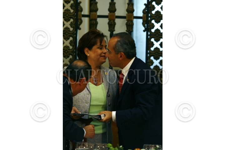 MEXICO D.F. 8ENERO2008.- El presidente de México, Felipe Calderón Hinojosa, durante la ceremonia conmemorativa del día de la enfermera, que tuvo lugar en el salón Adolfo López Mateos de la residencia de los pinos FOTO ALFREDO GUERRERO/CUARTOSCURO.COM