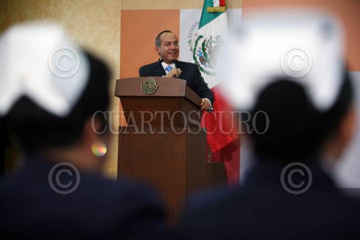 MEXICO D.F. 8ENERO2008.- El presidente de México, Felipe Calderón Hinojosa, durante la ceremonia conmemorativa del día de la enfermera, que tuvo lugar en el salón Adolfo López Mateos de la residencia de los pinos FOTO ALFREDO GUERRERO/CUARTOSCURO.COM