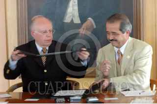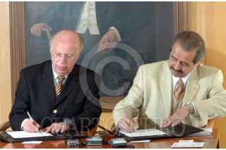 MÉXICO D.F., 11ENERO2008.- El secretario de salud José ángel Cordova Villalobos y el rector de la UNAM, dr. José Narro firmaron un convenio de colaboración para el desarrollo de actividades academicas, docentes, de investigación y difusión cultural para proteccion y atención de la salud de los mexicanos. FOTO: CUARTOSCURO.COM