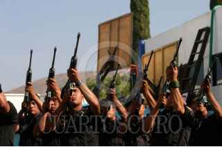OAXACA OAXACA 11ENERO2008.-Elmentos del policia estatal de la PGR, rinde homenaje a sus compañeros caidos en cumplimiento de su dever durante la celebración en su día. FOTO: MAX NUÑEZ/CUARTOSCURO.COM
