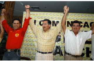CANCUN, QUINTANA ROO. 12ENERO2008.- Jesús Ortega Martínez se reunió con Greg Sánchez, candidato a la alcaldia de Cancún y el senador José Luis Máximo García Zalvidea. FOTO: CUARTOSCURO.COM