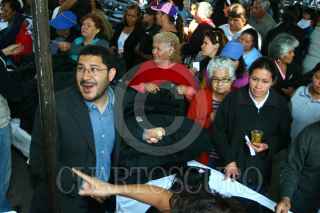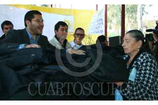 MÉXICO, D.F. 13ENERO2007.- El secretario de desarrollo social, Martí Batres entregó chamarras a habitantes de San Miguel Teotongo, en Iztapalapa, como parte de el programa En frío invierno, calor humano. FOTO: PAOLA HIDALGO/CUARTOSCURO.COM