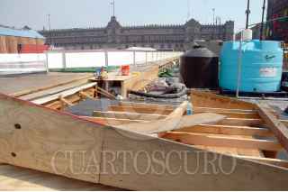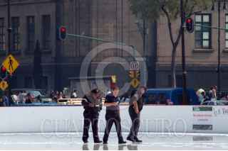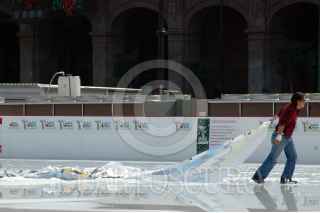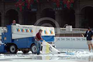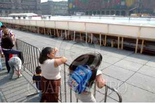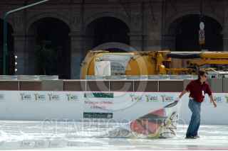 MÉXICO D.F., 13ENERO2008.- Una familia observa como la pista de hielo del Zócalo capitalino esta siendo desmontanda. FOTO: RODOLFO ANGULO/CUARTOSCURO.COM