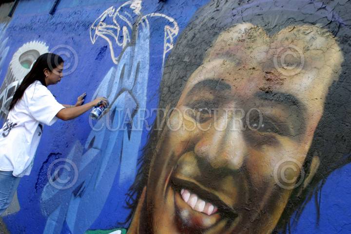 MÉXICO, D.F., 13ENERO2008.- Decenas de graffiteros se encargaron de decorar las paredes exteriores del estacionamiento del Estadio Azteca, como parte del concurso organizado por una marca de pintura. FOTO: ISAAC ESQUIVEL/CUARTOSCURO.COM