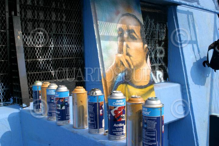MÉXICO, D.F., 13ENERO2008.- Decenas de graffiteros se encargaron de decorar las paredes exteriores del estacionamiento del Estadio Azteca, como parte del concurso organizado por una marca de pintura. FOTO: ISAAC ESQUIVEL/CUARTOSCURO.COM