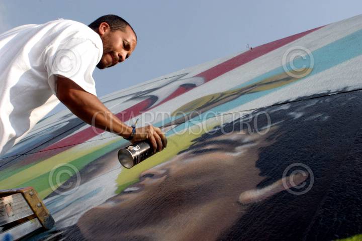 MÉXICO, D.F., 13ENERO2008.- Decenas de graffiteros se encargaron de decorar las paredes exteriores del estacionamiento del Estadio Azteca, como parte del concurso organizado por una marca de pintura. FOTO: ISAAC ESQUIVEL/CUARTOSCURO.COM