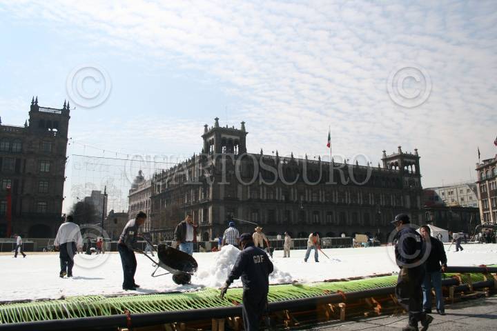 MÉXICO,D.F14 ENERO2008.- Vista panorámica de la pista de hielo, en donde elementos del Gobierno del Distrito Federal siguen con las tareas de desmantelamiento. FOTO: SASHENKA GUTIERREZ/CUARTOSCURO.COM