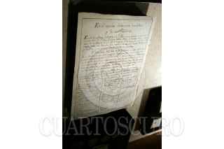 MÉXICO,D.F 15ENERO2008.- Vestigios encontados dentro de una caja del tiempo encontrado este pasado 22 de Octubre durante los trabajos de restauración en Catedral. En la imágen pergamino que relaciona el acontecimiento y contenido de la caja FOTO: SASHENKA GUTIERREZ/CUARTOSCURO.COM