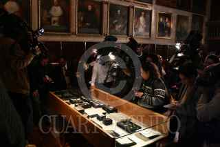 MÉXICO,D.F 15ENERO2008.- El pasado 22 de Octubre en la catedral metropolitana fué encontrada una caja del tiempo que contenia varias monedas y medallas, en la imágen el pergamino que relaciona el acontecimiento. FOTO: SASHENKA GUTIERREZ/CUARTOSCURO.COM