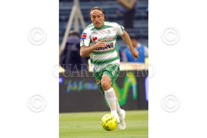 MÉXICO D.F., 19ENERO2008.- Fernando Ortiz festeja el gol anotado con Vicente José Matías de los laguneros del Santos durante el encuentro contra el Cruz Azul en la primera jornada del torneo de clausura 2008, quedando el marcador con un empate a 1 tanto. FOTO: RODOLFO ANGULO/CUARTOSCURO.COM