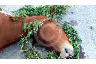 CHAPALA, JALISCO., 21NERO2008.- Así amaneció un caballo atropellado en la carretera Chapala – Jocotepec cruce con Río Naza. Parece que el accidente pasó sábado en la noche. Sin embargo ni quien debería cuidarlo de vivo ni de muerto acude a remover el cuerpo que ya empezó a desprender olores. FOTO: MARIA DI PAOLA/CUARTOSCURO.COM
