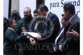 MÉXICO D.F., 21ENERO2008.- El jefe de gobierno Marcelo Ebrard realizo entrega de uniformes escolares a alumnos de secundaria. FOTO: IVAN MENDEZ/CUARTOSCURO.COM