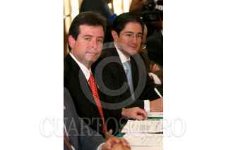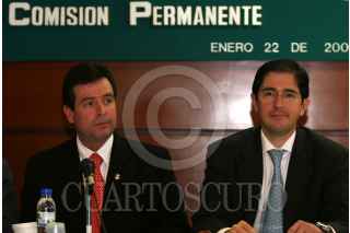 MÉXICO D.F. 22 ENERO2008.-Dionisio Peréz-Jácome Frisione, acudio a comparecer ante la tercera comisión de la Comisión Permanente, para ser ratificado como Subsecretario de Egresos de la Secretaria de Hacienda.En la imagen es acompañado por el Senador Alfonso Elías Serrano presidente de la tercera comisión. FOTO: GUILLERMO PEREA/CUAERTOSCURO.COM