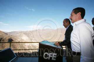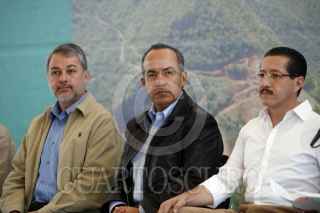 HOSTOTIPAQUILLO, JALISCO, 22ENERO2008.- El gobernador de Jalisco, Emilio González, el presidente Felipe Calderón Hinojosa y el gobernador del estado de Nayarit, Ney González, durante el inicio de obras de la presa "La Yesca". FOTO: ALFREDDO GUERRERO/CUARTOSCURO.COM