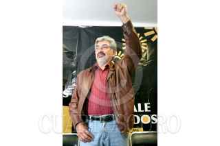 MÉXICO, D.F., 22ENERO2008.- Camilo Valenzuela, registró su candidatura a la dirigencia nacional del PRD, le recibió la documentación el senador Arturo Nuñez, el evento tuvó lugar en el centro de convenciones Expo Reforma. FOTO: MOISÉS PABLO/CUARTOSCURO.CO