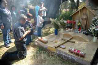 TULTITLAN, ESTADO DE MÉXICO, 27ENERO2008.- Decenas de fieles de la Santa Muerte asistieron a la misa que se realizo en el santuario que se encuentra en Santa Maria Cuautepec en el municipio de Tultitlan. FOTO: RODOLFO ANGULO/CUARTOSCURO.COM
