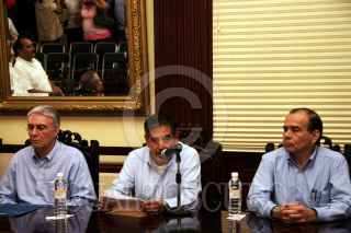 VILLAHERMOSA, TABASCO, 28ENERO2008.- En la sala de juntas de Palacio de Gobierno se efectuó la presentación de los nuevos servidores públicos en tres diferentes reclusorios del estado. Dicha pronunciación la llevo a cabo el general retirado y Secretario de Seguridad Pública Alberto Espinosa Ramírez, en compañía del Secretario de Gobierno; Humberto Mayans y el procurador general de justicia Gustavo Rosario. FOTO: MARCO POLO GUZMÁN HERNÁNDEZ/CUARTOSCURO.COM