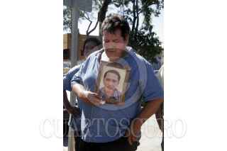 VILLAHERMOSA, TABASCO, 29ENERO2008.- José Adrián Reyes Palacios, padre del fallecido Edgardo Reyes Castellanos lleva una grafica de su hijo en vida, donde se puede apreciar el grave dolor por la pérdida de su hijo. FOTO: MARCO POLO GUZMÁN HERNÁNDEZ/CUARTOSCURO.COM