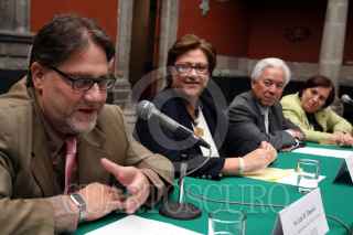 MÉXICO D.F. 29ENERO2008.-Luis. M. Tiburcio Director y Representante de la UNESCO en México acompañado de Elena Cepeda de León titular de la Secretaria de Cultura del gobierno capitalino y de Axel Dridikson Secertadio de educación del gobierno capitalino durante la firma del convenio de cooperaración a largo plazo, esto en el Museo de la Ciudad. FOTO: GUILLERMO PEREA/CUARTOSCURO.COM