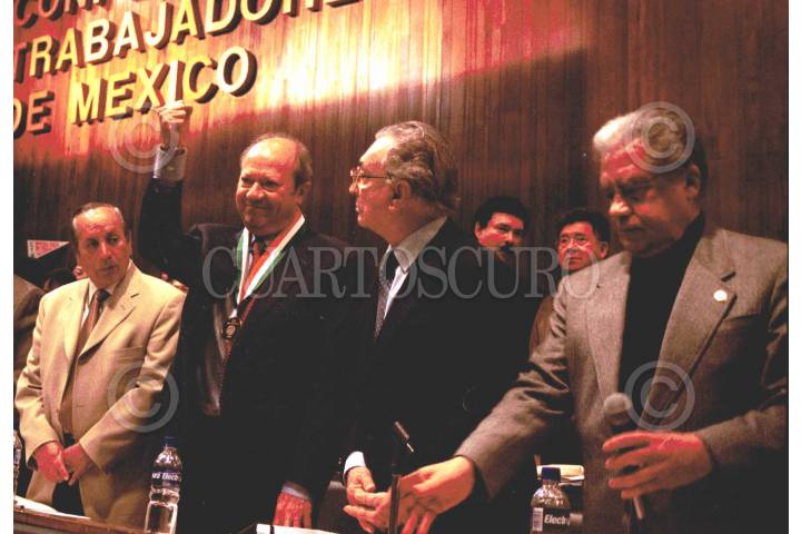 Simpatizantes del lider petrolero carlos Romero Deschamps asistieron a la entrega de medalla Fidel Velazquez en el auditorio "Fernando Amilpa" de la CTM. FOTO: Susana Navarrete/CUARTOSCURO.COM