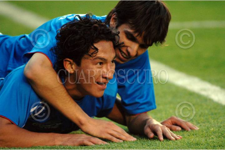 MÉXICO D.F., 02FEBRERO2008.- Gerardo Torrado del Cruz Azul pelea el balón con un jugador del San Luis durante el partido de la jornada 3 que los cementeros ganaron 4 goles a cero. FOTO: RODOLFO ANGULO/CUARTOSCURO.COM
