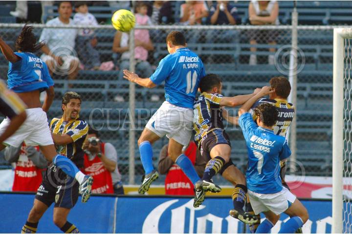 MÉXICO D.F., 02FEBRERO2008.- Gerardo Torrado del Cruz Azul pelea el balón con un jugador del San Luis durante el partido de la jornada 3 que los cementeros ganaron 4 goles a cero. FOTO: RODOLFO ANGULO/CUARTOSCURO.COM