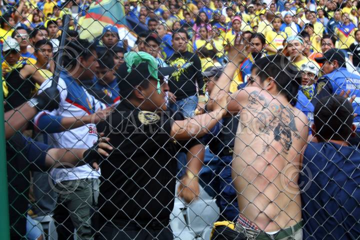 MÉXICO,D.,F 03FEBRERO2008.- Al término del encuentro America-Pumas hubo un conato de bronca entre miembos de las porras. FOTO: SASHENKA GUTIERREZ/CUARTOSCURO.COM