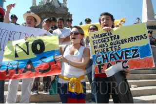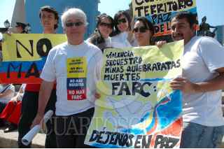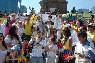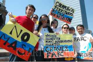 MÉXICO D.F., 04FEBERO2008.- Ciudadanos de origen colombiano radicados en México realizaron un mitin en el Ángel de la Independencia en repudio a la violencia de las Fuerzas Armadas Revolucionarias de Colombia (FARC), al centro la ex Miss Universo colombiana Vanessa Mendoza. FOTO: RODOLFO ANGULO/CUARTOSCURO.COM