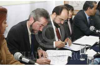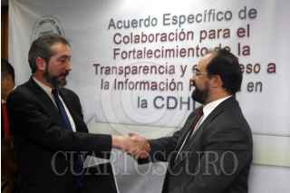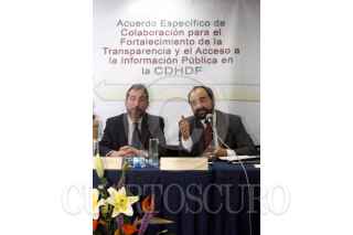 MÉXICO D.F., 5FEBRERO2008.- Esta mañana se llevó a cabo la firma del acuerdo específico de colaboración para el fortalecimiento de la transparencia y el acceso a la información pública en la CNDH. El evento estuvo encabezado por el presidente del INFODF, Oscar Guerra Ford y el presidente de la CNDH Emilio Alvarez Icaza. FOTO: URIEL ROLDAN AGUILAR/CUARTOSCURO.COM