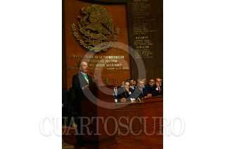 QUERETARO,QUERETARO 05FEBRERO2008.- Felipe Calderón Hinojosa Presidente de los Estados Unidos Mexicanos durante la ceremonia del XCI de la constitución politica realizada en el teatro de la República. FOTO:SASHENKA GUTIERREZ/CUARTOSCURO.COM