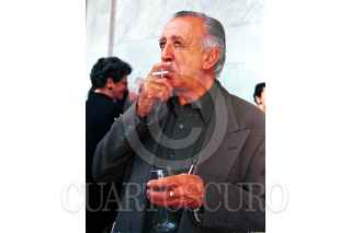 Vicente Leñero, premio nacional de periodismo 2001, al finalizar la presentación del libro de Gonzalo Celorio titulado "Ensayo de la Contraconquista". FOTO: Juan Pablo Zamora/CUARTOSCURO.COM