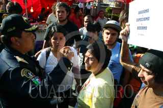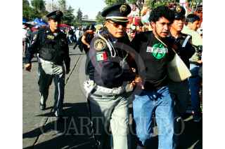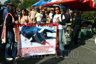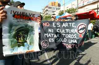 MÉXICO, D.F., 05FEBRERO2008.- Jóvenes fueron detenidos durante la manifestación en la entrada de la Plaza de Toros México en contra de la fiesta brava, durante el 62 aniversario del Coso más grande del mundo. FOTO: ISAAC ESQUIVEL/CUARTOSCURO.COM