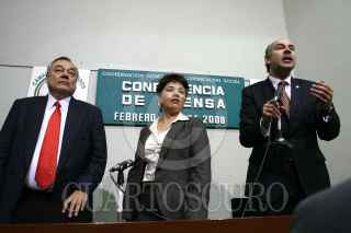 MÉXICO D.F. 05FEBRERO2008.-Los diputados Ricardo Cantú del PT, Marina Arvizu de Alternativa y Alejandro Chanoa de Convergencia, durante su conferencia de prensa en la Cámara de Diputados. FOTO: GUILLERMO PEREA/CUARTOSCURO.COM