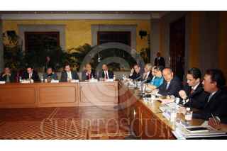 MÉXICO, D.F., 31ENERO2008.- El presidente Felipe Calderón se reunió esta tarde en los pinos con la presidenta del PRI, Beatriz Paredes, así como el coordinador del grupo parlamentario de PRI en la Camara de Diputados, Emilio Gamboa Patron, quienes acompañaron al líder de la CNC, Cruz López Aguilar para revisar temas correspondiente al campo mexicano. FOTO: IMPERIO RESENDIZ/CUARTOSCURO.COM