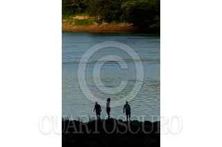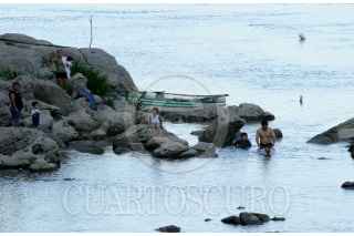 TENOSIQUE, TABASCO, 06FEBRERO2008.- El diario acontecer en la comunidad Boca del Cerro. En la imagen una familia de pescadores se refresca sobre las orillas del caudaloso río Usumacinta. FOTO: MARCO POLO GUZMÁN HERNÁNDEZ/CUARTOSCURO.COM