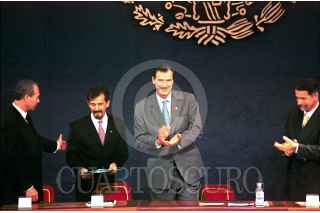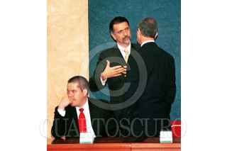 Carlos Abascal conversa con Pedro Cerisola durante la protesta al nuevo Comité Ejecutivo Nacional de la Asociación Sindical de Sobrecargos de Aviación (ASSA), en la residencia oficial de Los Pinos. FOTO: Victoria Valtierra/CUARTOSCURO.COM