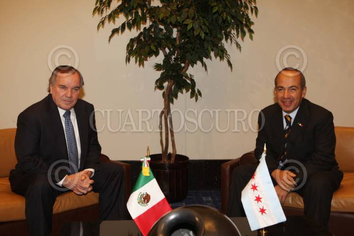 CHICAGO, ILLINOIS, USA, 12FEBRERO2008.- Rod R. Blagojevich, gobernador de Illinois, se reunió con Felipe Calderón, Presidente de México, en el marco de su gira por tierras norteamericanas. Los acompañaron los gobernadores Silverio Cavazos, Colima, Juan Muanuel Oliva, Guanajuato, Amalia García, gobernadora Zacatecas y Ernesto Cordero, Secretario de Desarrollo Social. FOTO: ALFREDO GUERRERO/CUARTOSCURO.COM
