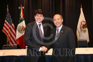 CHICAGO, ILLINOIS, USA, 12FEBRERO2008.- Rod R. Blagojevich, gobernador de Illinois, se reunió con Felipe Calderón, Presidente de México, en el marco de su gira por tierras norteamericanas. Los acompañaron los gobernadores Silverio Cavazos, Colima, Juan Muanuel Oliva, Guanajuato, Amalia García, gobernadora Zacatecas y Ernesto Cordero, Secretario de Desarrollo Social. FOTO: ALFREDO GUERRERO/CUARTOSCURO.COM
