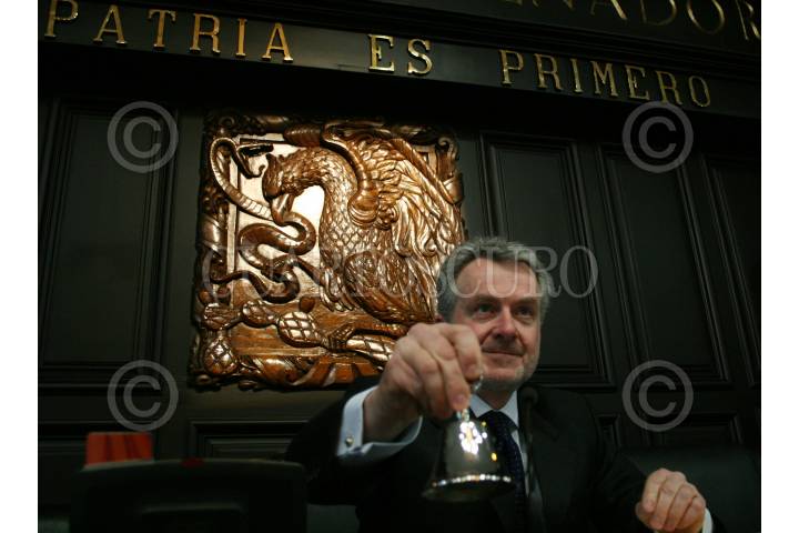 MÉXICO, D.F., 12FEBRERO2008.- Los senadores Gustavo Madero y Pablo Gómez, durante la sesión ordinaria en el senado de la República. FOTO: SASHENKA GUTIERREZ/CUARTOSCURO.COM