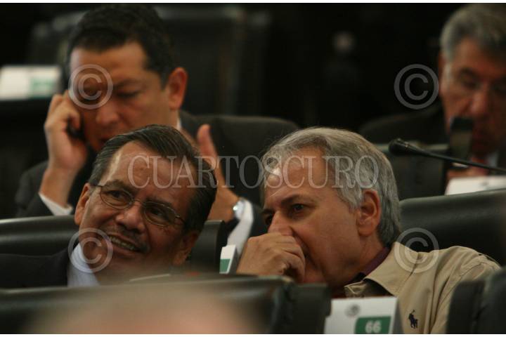 MÉXICO, D.F., 12FEBRERO2008.- Los senadores Gustavo Madero y Pablo Gómez, durante la sesión ordinaria en el senado de la República. FOTO: SASHENKA GUTIERREZ/CUARTOSCURO.COM