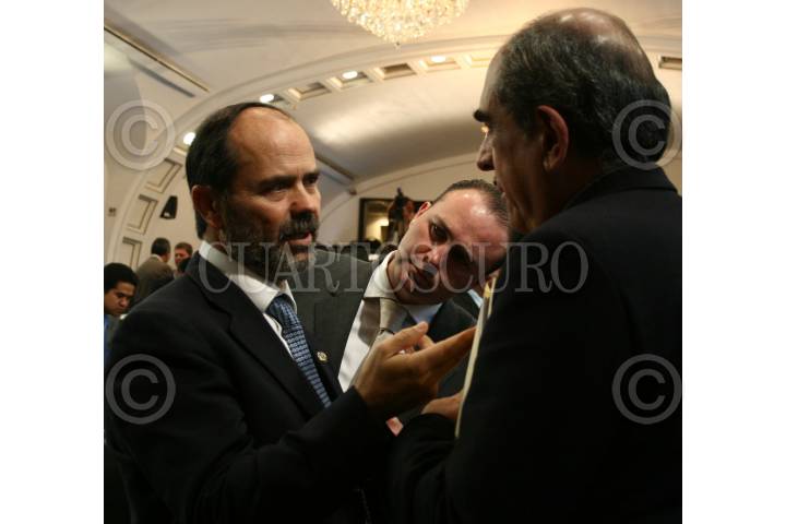 MÉXICO, D.F., 12FEBRERO2008.- Los senadores Gustavo Madero y Pablo Gómez, durante la sesión ordinaria en el senado de la República. FOTO: SASHENKA GUTIERREZ/CUARTOSCURO.COM