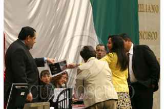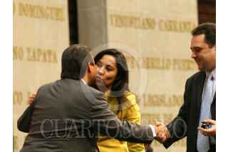 MÉXICO D.F. 12 FEBRERO 2008.-Horacio Brenes, embajador de Nicaragua en nuestro país, asi como Agustin Jarquir Anaya Vicepresidente de la Comisión de Energia y Servicio Publico de Nicaragua, durante la reunión con la diputada del PRD Ruht Zavaleta, presidenta de la mesa directiva. FOTO: GUILLERMO PEREA/CUARTOSCURO.COM